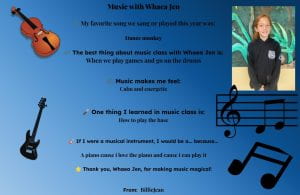 We loved our music sessions with Whaea Jen, so we created a poster to share the things we enjoyed. We are going to give this to Whaea Jen next week.